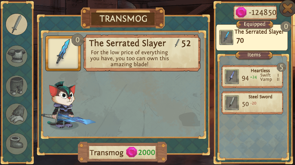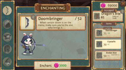 The new enchantress shop is now in game, letting you enchant your equipment with a variety of random buffs and transmog it, to customize your look without sacrificing any stats! Enchanting can grant up to 3 enchants at once, each with up to 3 tiers of power. [i]You may end up cursing at the gods of luck[/i]