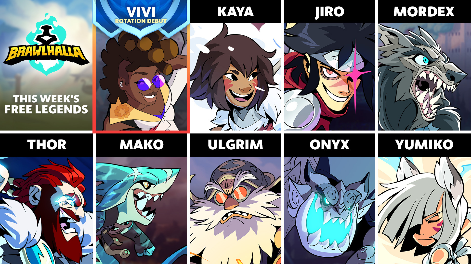 [i]The free-to-play Legend rotation for this week features the stunning debut of Vivi, alongside Kaya, Jiro, Mordex, Thor, Mako, Ulgrim, Onyx, and Yumiko. [/i]- Vivi – With her lucky Blasters (complete with cat charm), and Aú Sem Mão Battle Boots, Vivi’s graceful moves are as dangerous as they are mesmerizing. When she’s not participating in the Grand Tournament, she loves updating her cat blog, “Across the Unifurs”.