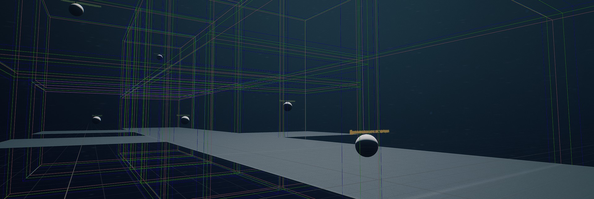 5. And, of course, right now, on our developer’s versions of the engine, you can appreciate more than a thousand kilometers of beautiful cosmic landscapes (don’t forget to imagine more than a thousand kilometers of beautiful cosmic landscapes in the picture below). Okay, we admit, there was no point in putting together the locations without the script, so this is why there are spheres, descriptions above them, and basic mechanics there.