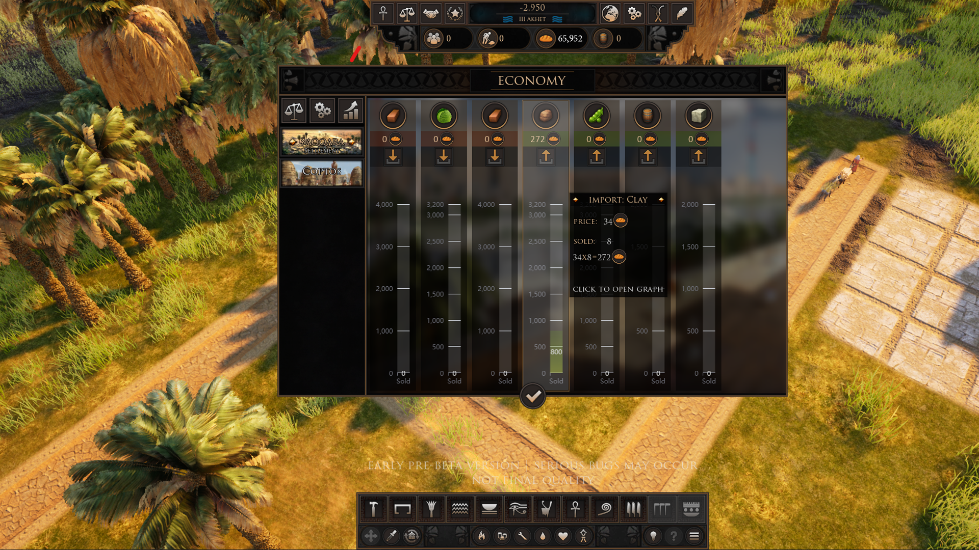 This means that the player will have full information about what happens to a particular commodity over time. How much of the commodity has been harvested, how much has been exported and how much has been imported, with the cost or profit detailed. A seemingly insignificant change but very important for understanding the game economy.