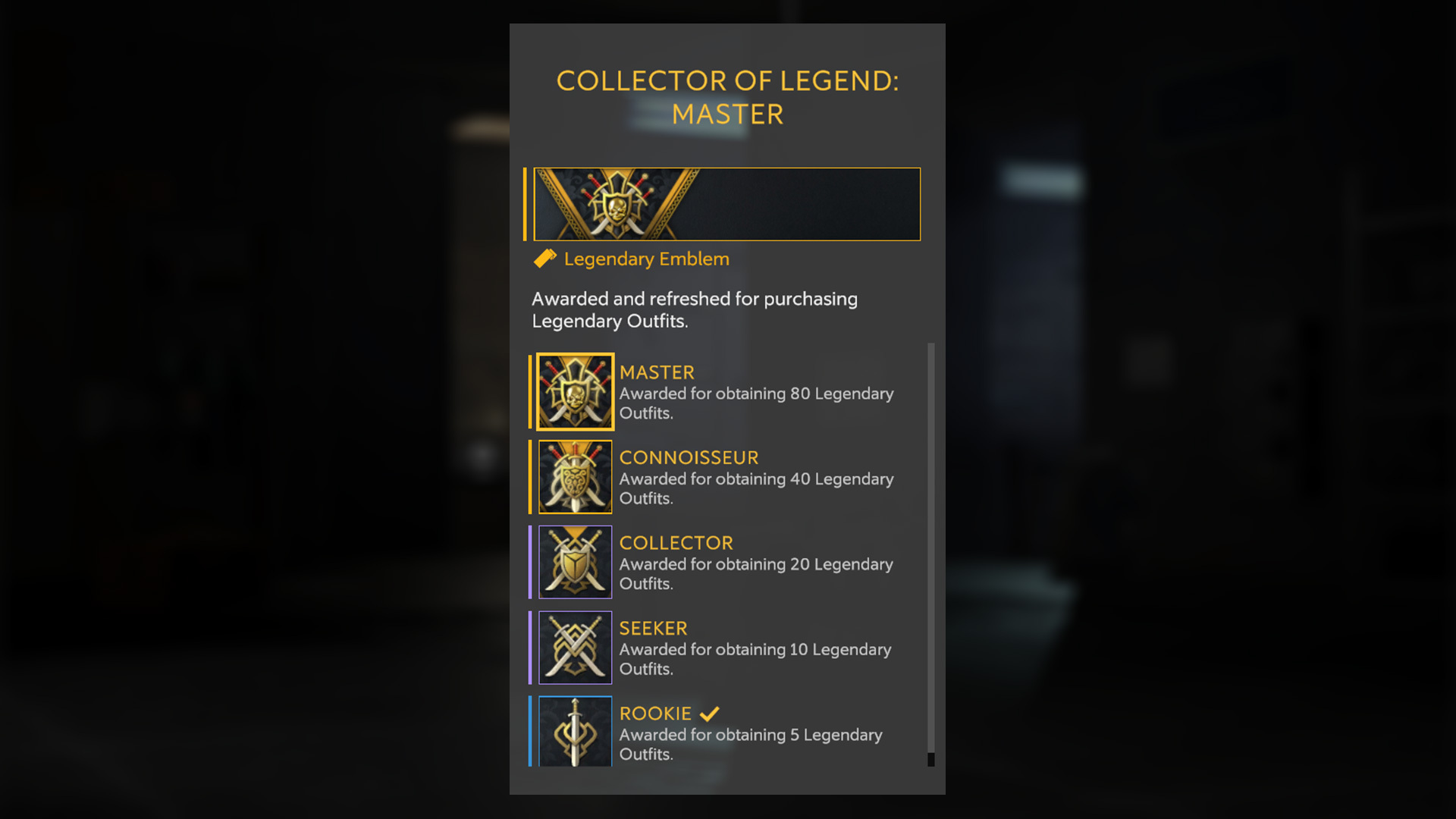 - Collector of Legend: Master — 80 Legendary Outfits.