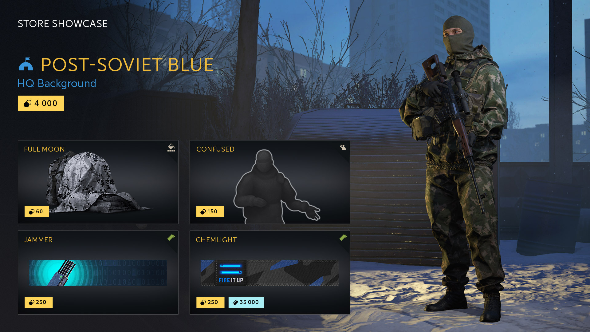 New content: the Confused Emote, the Full Moon Camo, the Jammer and ChemLight Emblems.