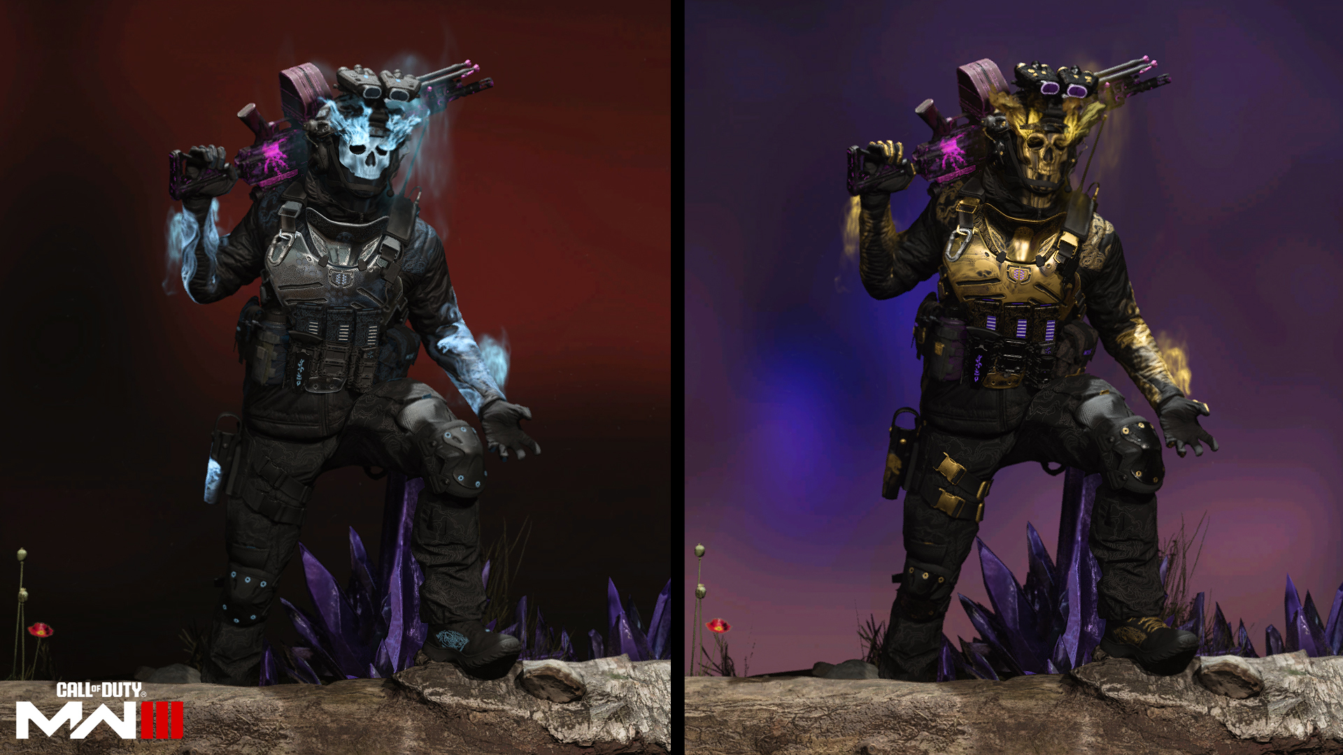 [b]BlackCell Additional Skin: [/b]Ghost trades his white skull mask for a golden one, accentuated with golden flames over the eyes and vapor rising from his arms.