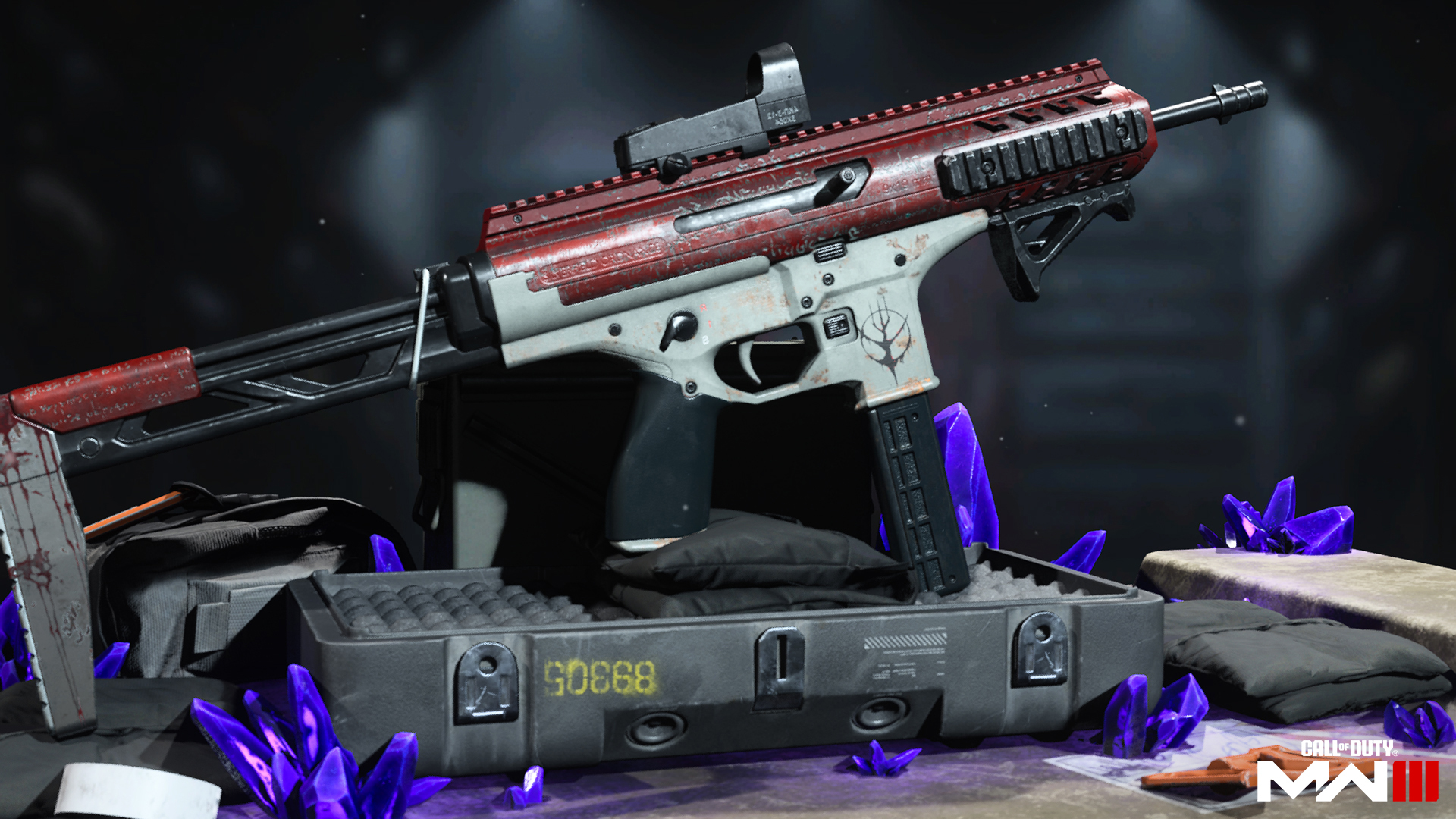 Enter battle from another plane and as a warrior without equal using the “Titan” Operator Skin for Bantam, featuring animated alien designs over tough upper body armor and a helmet of alien design. Equip two Weapon Blueprints with Netherblaze Tracers and the Netherburst Death Effect: the “Primordium” SMG, crafted with an animated alloy and geared for mid-ranged precision; and the “Quasar” LMG, outfitted with a bipod mount and muzzle flash concealment for precise, low-profile engagements.