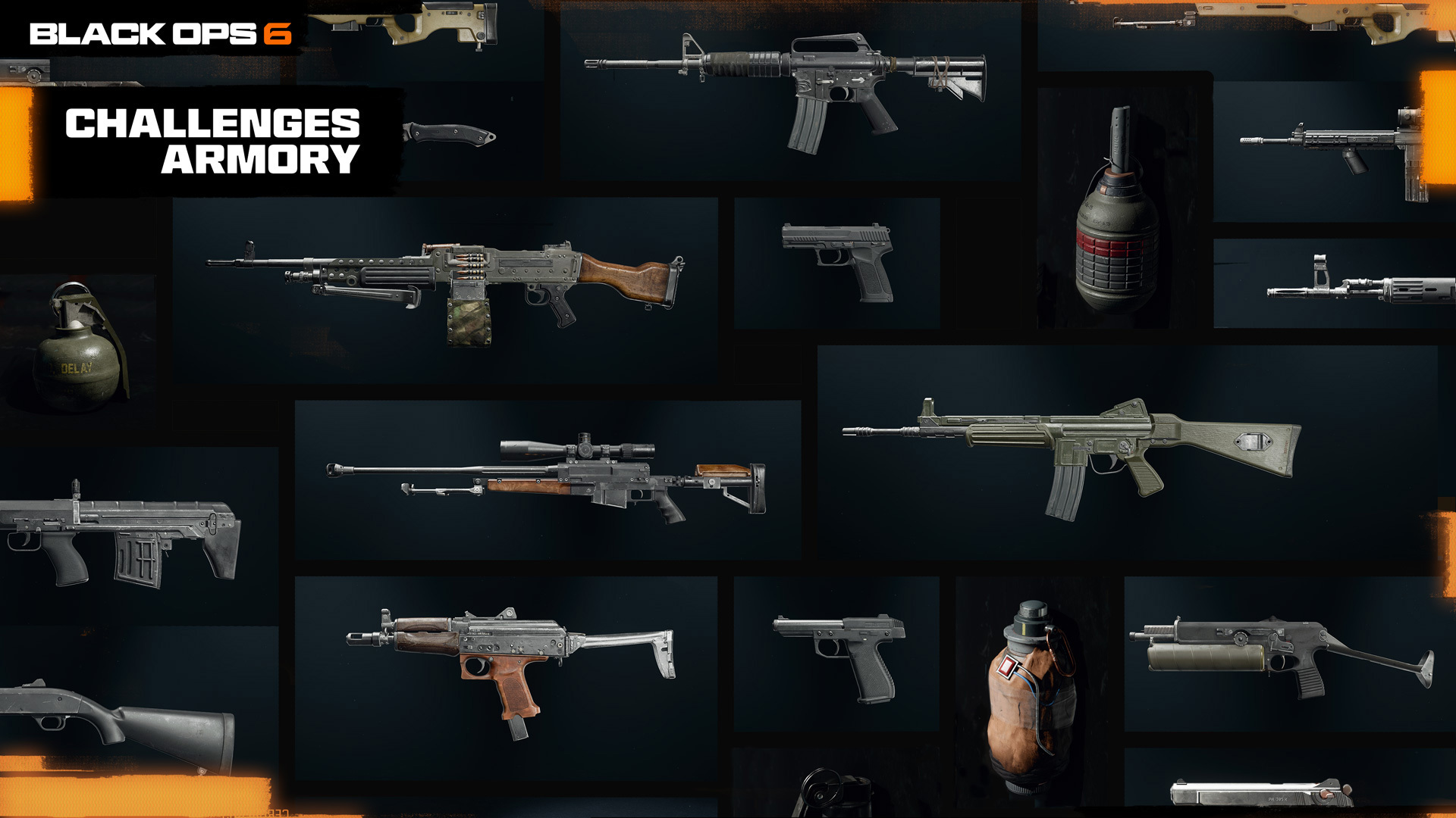 Coming to [i]Black Ops 6[/i] Multiplayer, Zombies, and [i]Call of Duty: Warzone[/i] at the start of Season 01 is the Armory, easily accessible from your Barracks > Challenges menu. Like in [i]Modern Warfare III[/i], the [i]Black Ops 6[/i] Armory is a repository that provides access to previously missed Loadout content from prior Battle Passes and Events. Activate an item in the Armory to start earning XP toward unlocking it.