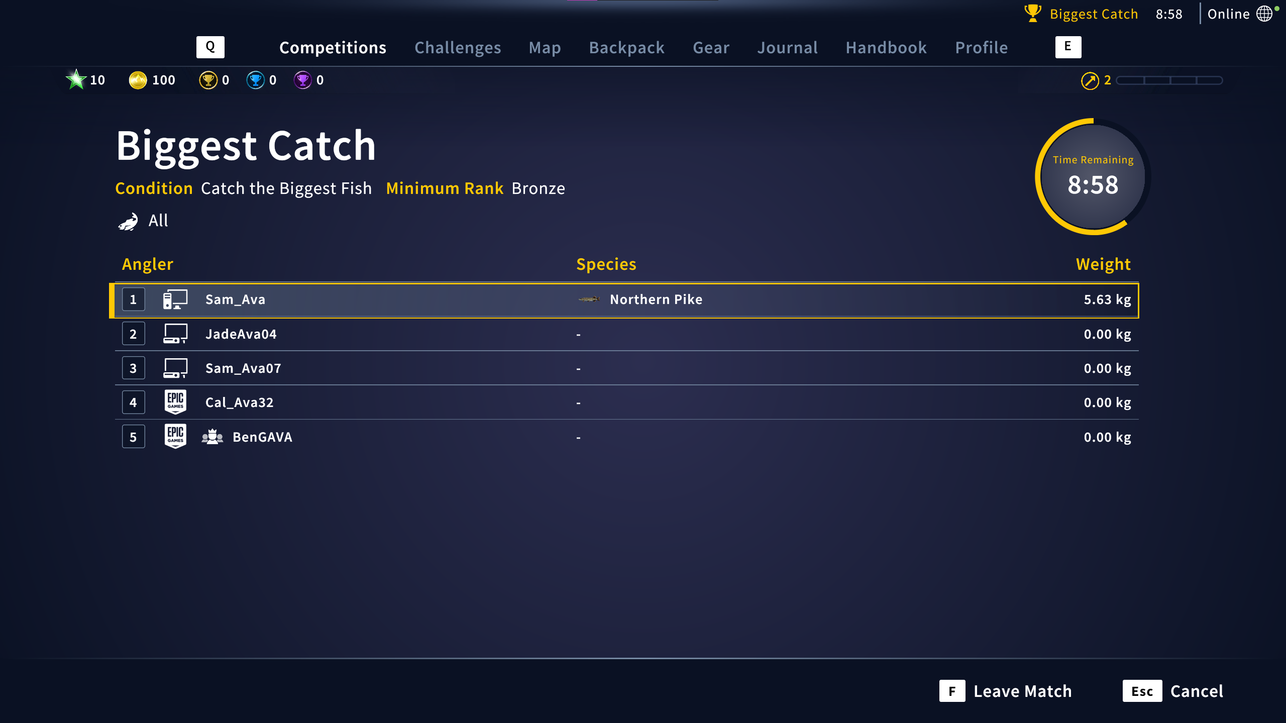 Set up custom competitions and challenge your friends for some classic angling rivalry. Prove your skills in head-to-head competitions with up to 11 other players on the same server in the following disciplines:- Biggest Catch: Catch the Biggest (heaviest) Fish