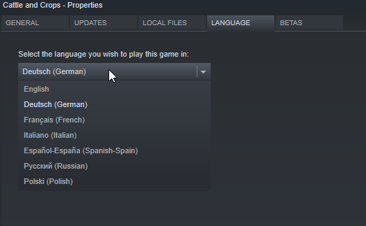 You can select the new languages in Steam under the Cattle and Crops properties: