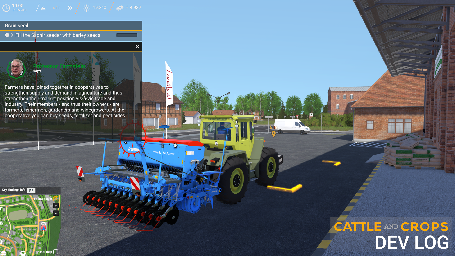 In the holistic development of Cattle and Crops, we are working in parallel on many different levels - both "in" and "around" the game. Not all of this is immediately visible or tangible. Certain things can only be released in a package after completion and thus made visible to you. In the last few months we have paid special attention to how we can offer you a great gaming experience. As announced in the last status update, we have implemented an extensive tutorial system, which should answer any open questions you may have at any time. But especially for CNC beginners we want to make the access to the game much easier. The second pillar are the campaigns which are new to the game and which we have enriched with the expertise of the Landwirtschaftsverlag both in the implementation and with corresponding accompanying information. The campaigns guide you through independent scenarios that are theme-based. You will be guided by "Professor Farmstein" and repeatedly provided with interesting information on the individual work steps and the general conditions in real agriculture. Furthermore, the campaigns are linked to the new career mode. If you play the career mode, not all tractors and implements are available right from the start, but you have to unlock them through the tutorials and campaigns. But if you want to start right away, you have the possibility to do this in the sandbox mode. Here everything is immediately available and you can simply start without having to fulfil any requirements.