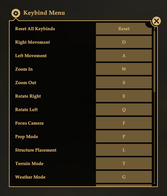 We continue to bring more accessibility options for Chronos Builder, this time being the possibility of rebinding all key shortcuts and commands. This way you can change the camera movement keys, menu shortcuts and even how to copy and paste.