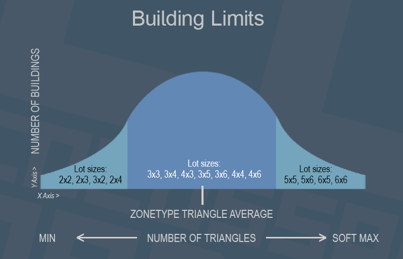 For each zone type, we established average, minimum, and soft maximum triangle counts based on the existing assets’ triangle counts in the base game. While Cities: Skylines II doesn’t impose strict triangle limits, creators requested guidelines to help them gauge the appropriate level of detail. Below is a diagram illustrating that smaller lot sizes should aim closer to the minimum values, while larger lot sizes could utilise a higher triangle budget, approaching the soft maximum. Most assets created for a zone type would typically align with the average triangle count provided.