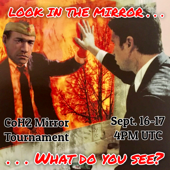 [b] CoH2 1v1 Mirror Tournament[/b] THE BIG ORANGE ONE Discord Server is hosting a CoH2 1v1 MIRROR TOURNAMENT in which players will be pitched against opponents of the same faction. This unusual style of tourney is guaranteed to give us some exciting and unpredictable matches. Sign up to compete or join live to watch the carnage! Save the date! Sept 16-17 @ 4PM UTC