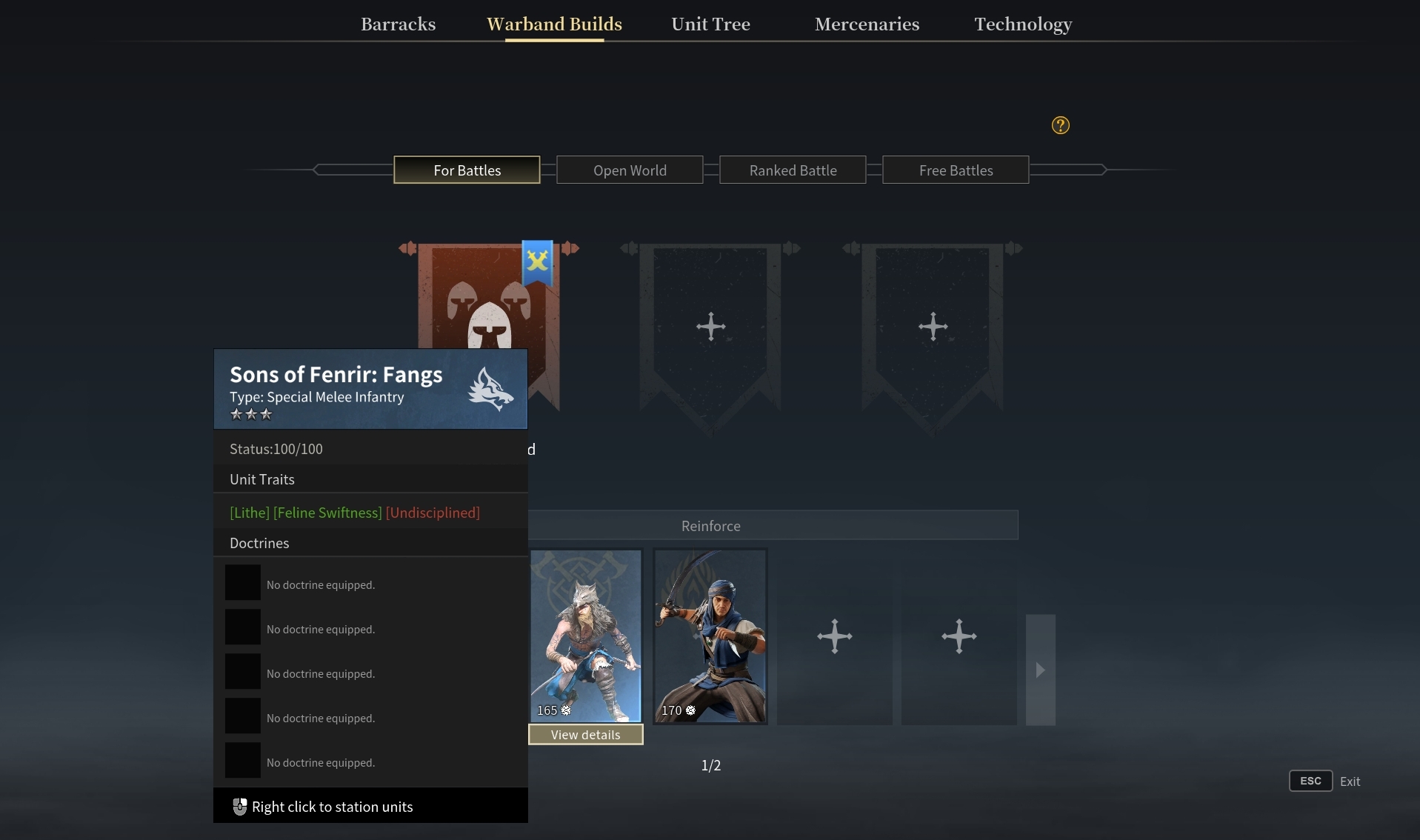 A quick-access button has been added to the [Unit] section of the [Warband Builds] interface, providing quick access to the [Unit Training] page.