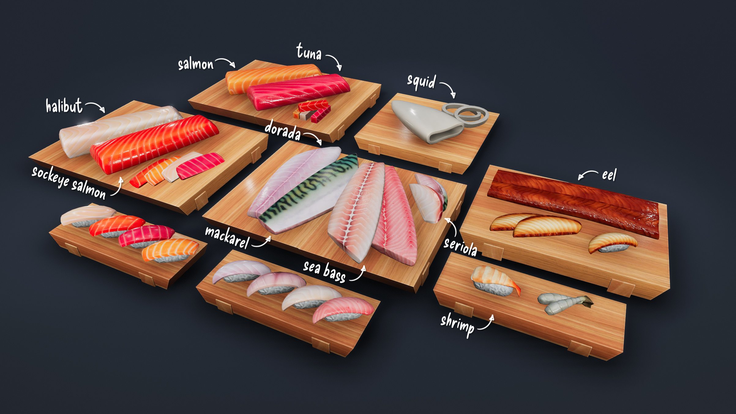 In the Cooking Simulator: Sushi [b]you’ll be able to elevate your sushi with the finest selection of fresh fish and seafood, sourced from the depths of the oceans and rivers.[/b] From [b]succulent salmon to melt-in-your-mouth tuna, you will explore a diverse range of premium ingredients.[/b] ????