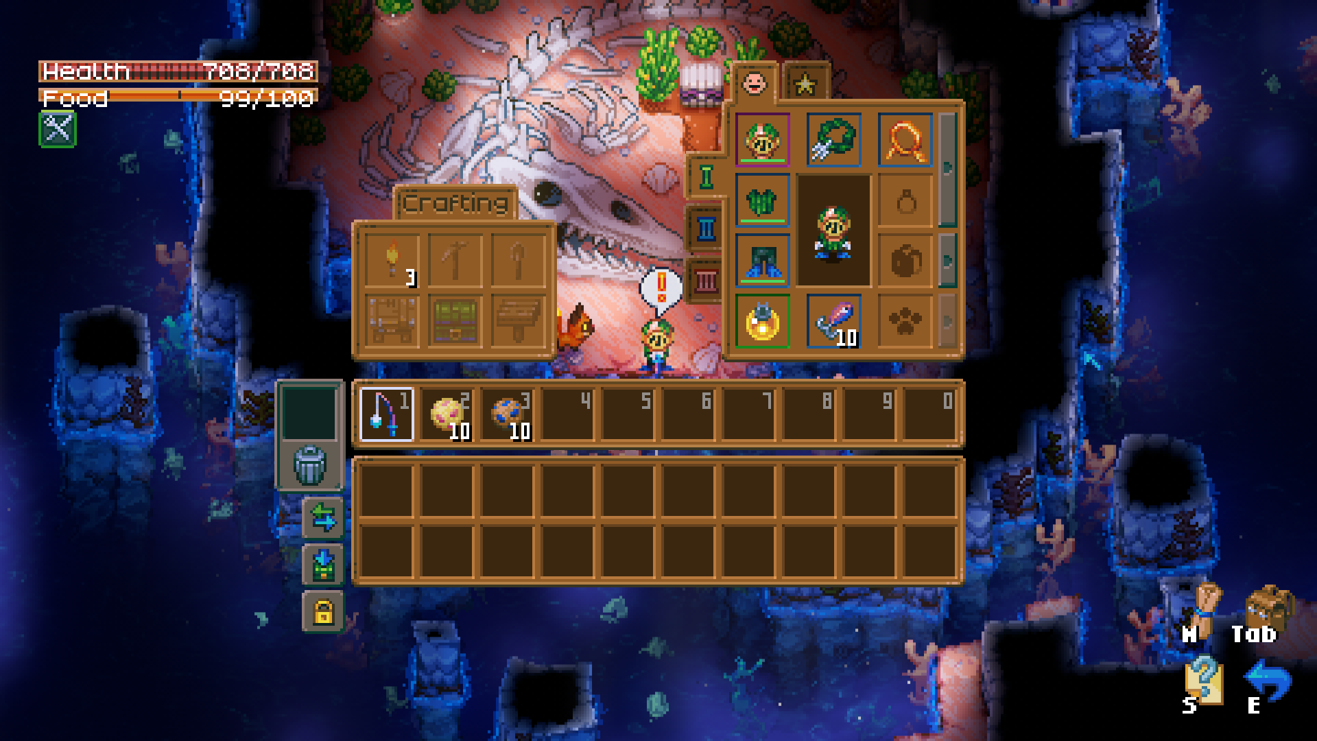 Here's a top tip for all you fishing enthusiasts! Equip the Diving Helm, Kelp Mantle, Scuba Fins, Neptune Necklace, and Goldfish Ring to take your fishing sessions to the next level. Not only will this armour set increase your max health and armour, it'll also offer a bonus to fishing, improve your chance of hooking a fish, increase the odds of a rare fish bite, add 24% of your fishing skill as range damage, AND improve the odds of bait not being consumed when catching a fish. Phew, that's a lot of fishing fun!