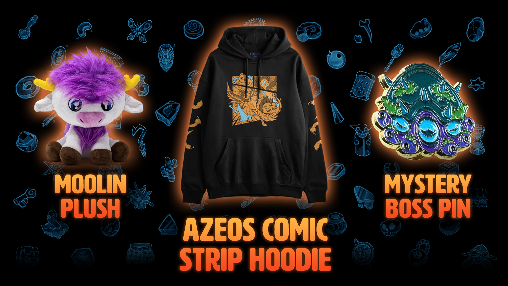 Explorers can also get their hands on 9 collectible boss pins, Core Keeper hoodies and T-shirts featuring several iconic designs, and even a pair of Core Keeper socks to keep your feet warm while you’re off on your own adventures! Not to mention a Moolin plush, available for pre-order now!