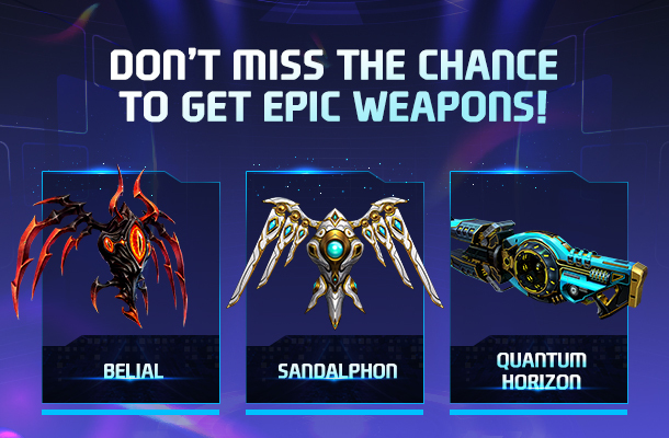 Don't miss this opportunity to receive Epic Weapons like Sandalphon, Belial, Quantum Horizon, and more