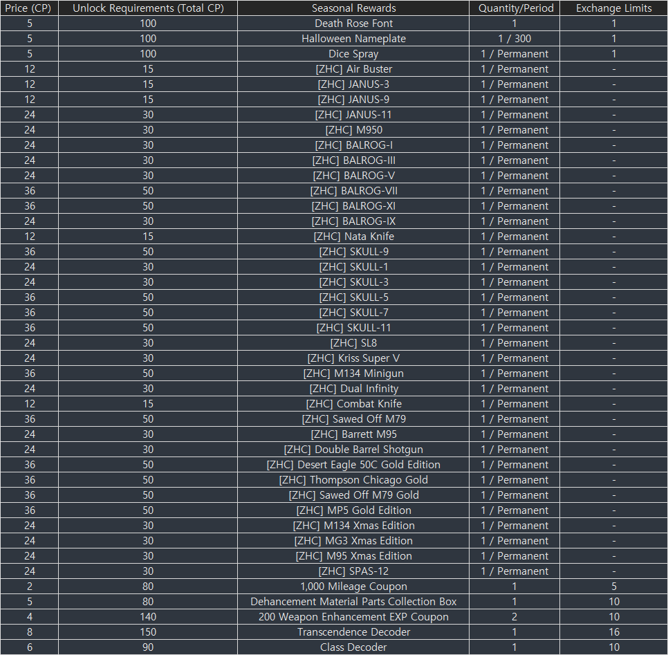 - All unused Premium CP will be removed during maintenance when the promotion ends.