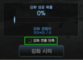 - Click on Shorten Enhancement Cutscene at the top of the Enhance button to turn this feature on. (Any changed settings will be saved until next login.)