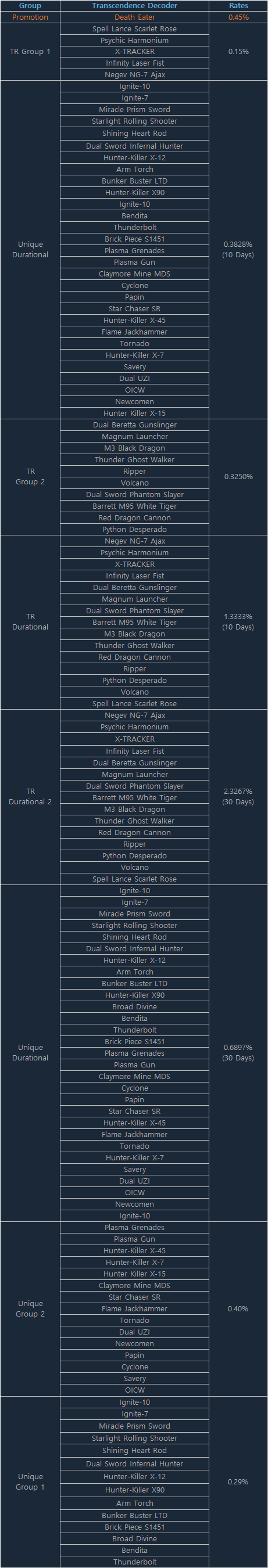 [b]8/7 Decoder Item Rates[/b]