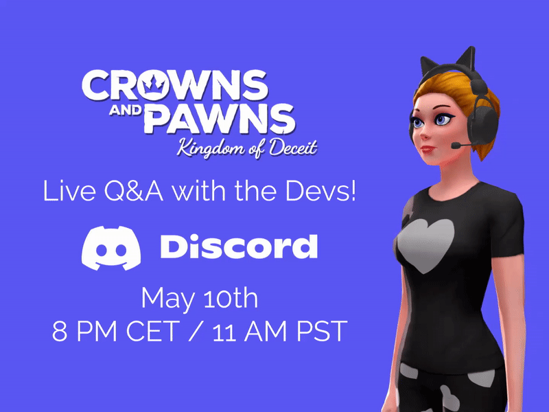 As we celebrate the 1st anniversary of Crowns and Pawns, we are hosting a live Q&A on Discord on May 10, at 8pm CET / 11am PST! Join us to chat about the game and learn our future plans????
