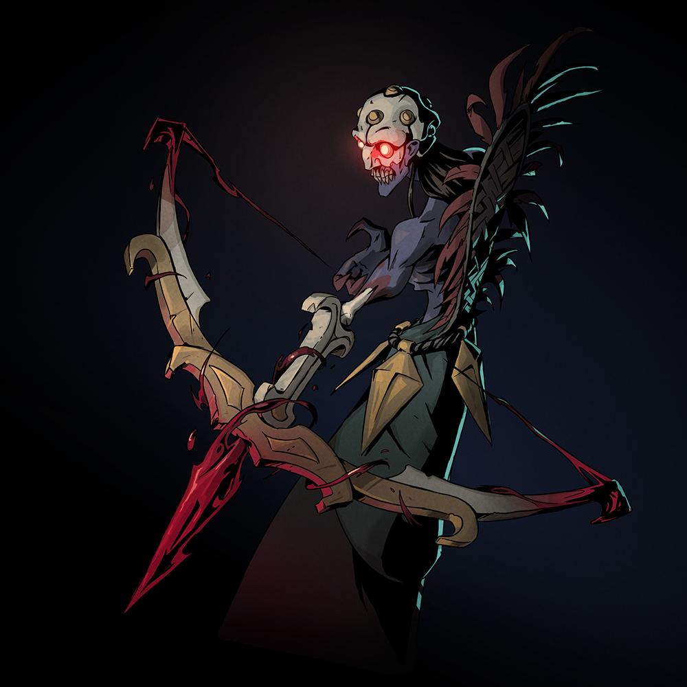 Humanoids with winged arms, their lower legs are sharp claws. Flying, aggressive creatures, Harpies rush their prey to tear it apart from their sharp limbs.