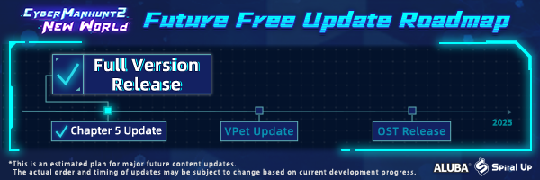 In the future, we’ll be releasing a [b]free update[/b] for the DLC desktop pet, along with the [b]free launch[/b] of the Cyber Manhunt 2: New World original soundtrack. Stay tuned for more updates!