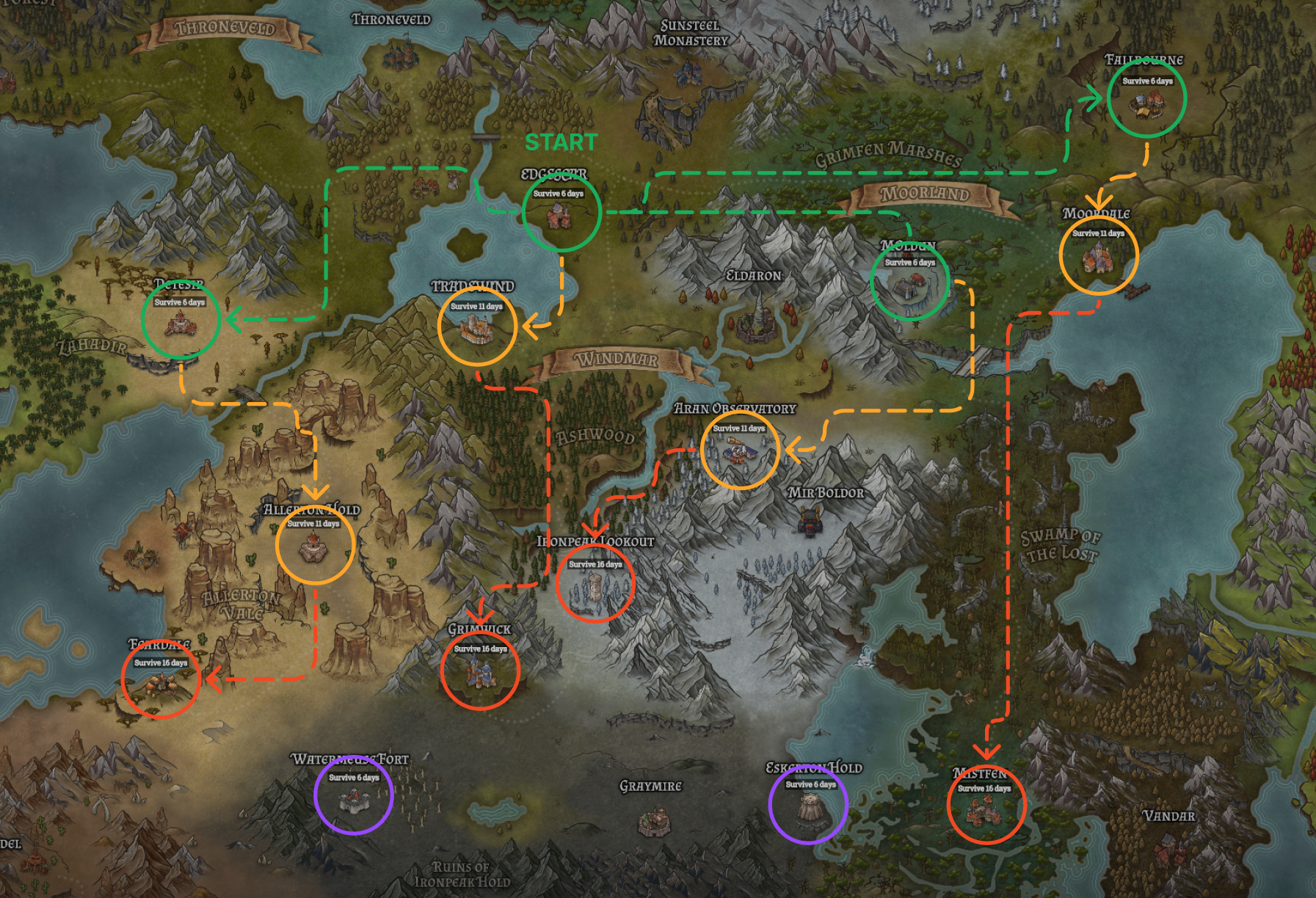 Lore: [i]The towns we are to re-build here belonged to a Windmar kingdom, the richest of the human kingdoms, that being until it fell to the overwhelming forces of the demons. No amounts of gold can buy you out of of that one.[/i]