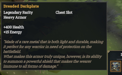 Among the ruins and within the darkest corners of Darfall lie legendary artifacts, relics of immense power whispered about in taverns and war camps alike. Marked by a [b]distinct glow[/b], these artifacts are as rare as they are powerful - echoing the legendary loot of Diablo. But be warned: they are only found in the hands of elite foes such as the [b]Orc Warchief[/b] or the [b]Undead Warlord[/b]. Behold, some of the treasures that await the bold: - [b]Dreaded Darkplate[/b] – a caster’s salvation! This enchanted robe conjures a [b]protective barrier[/b], shielding its wearer from harm.