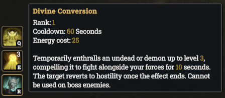 Perhaps the most curious magic of all - turn any Undead or Demon into your ally for a time. Even the vilest foes become your puppets beneath Solara’s light.