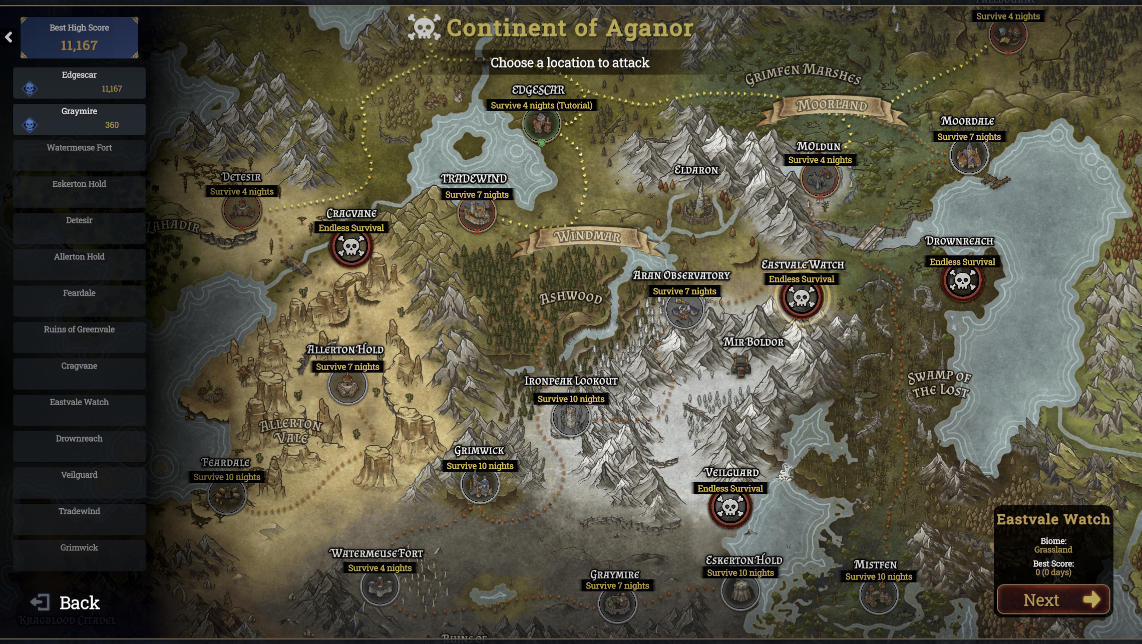 - You will eventually fall, as each night, the difficulty and number of enemies increase.
