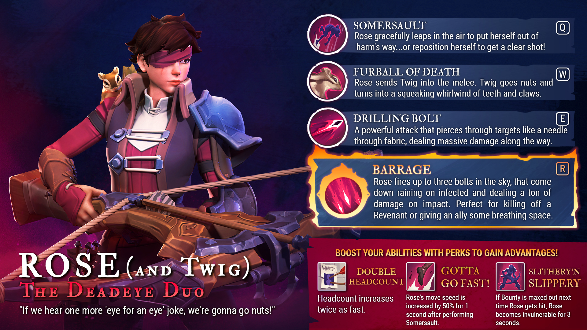[i]A prolific bounty hunter, expert marksman, with an eye (literally, singular) for a payday, Rose is not an easy woman to make friends with. Unless you're a small, striped rodent that she inexplicably takes a liking to, of course...?[/i]Let's introduce The Deadeye Duo, Rose & Twig!