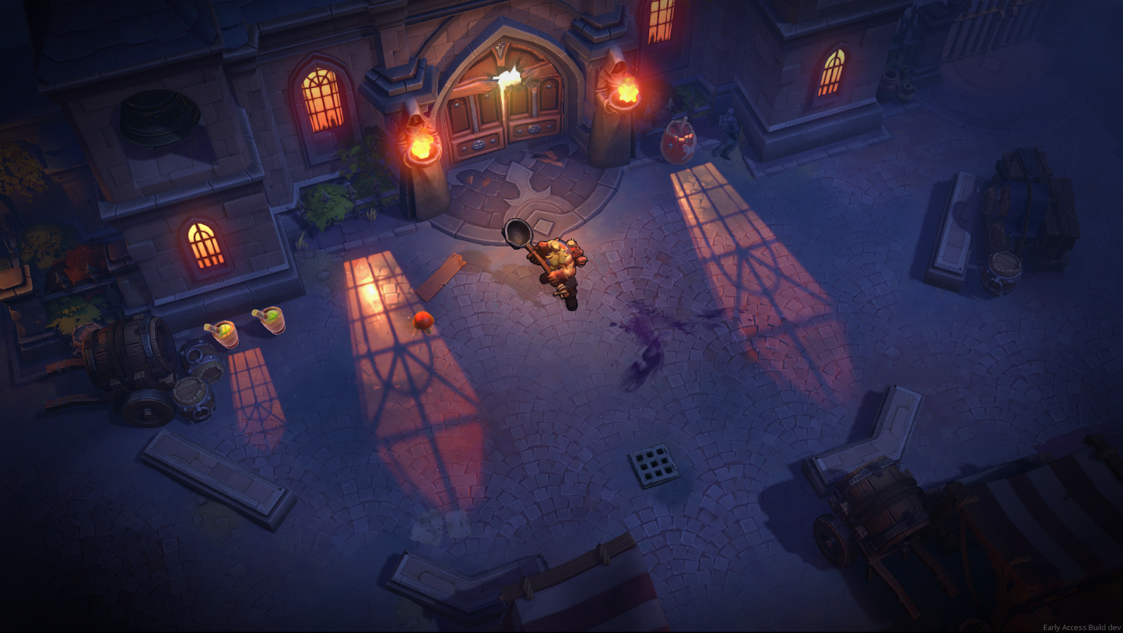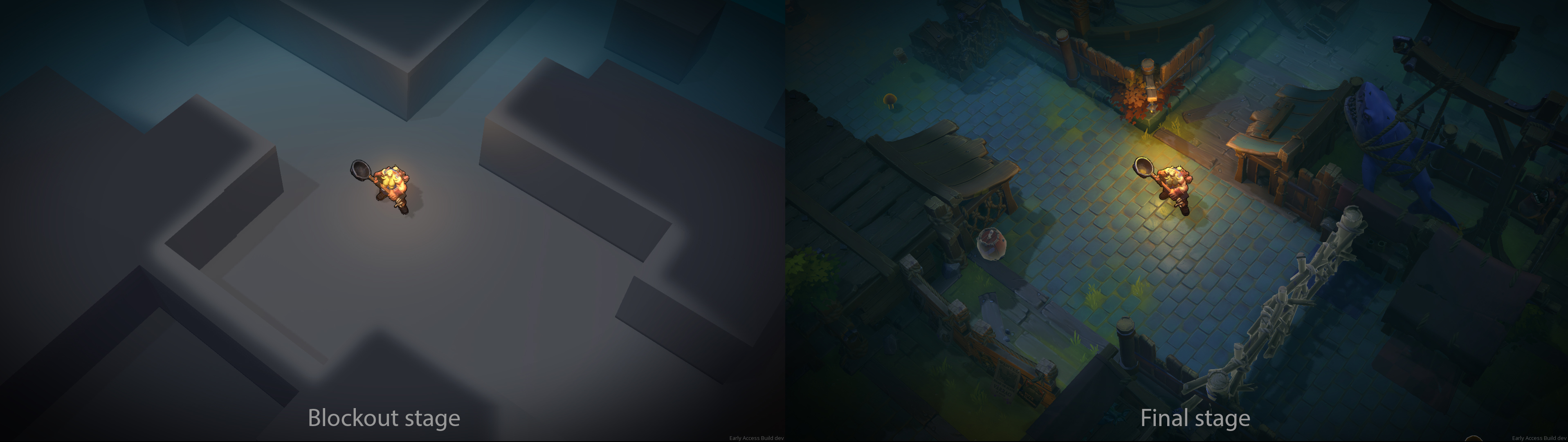 [b]In Darksburg, Survivors and Revenants fight each other in different parts of the city. What were the main inspirations for you when creating Darksburg’s levels?[/b] [u]Lary:[/u] Gameplay wise, it was really important to have a style that reads well from a top-down camera with large chunky shapes and smooth edges. Our style mixes handpainted details and material work to get nice reflections on surfaces. Our main game inspiration are Heroes of the storm, Battle Chasers and League of Legends and Diablo 3. [u]Lucas: [/u] About design, it’s quite hard to find references and guides for non-FPS games, so we had to do some digging to find interesting inspirations. Obviously, Left 4 Dead 1&2, Vermintide 1&2, and games like Alien Swarm were interesting guidelines for the game, especially regarding the overall architecture of a level. We’ve also looked for games like Battlerite, Heroes of the Storm, League of Legends and Diablo to learn about level design with a top-down camera.