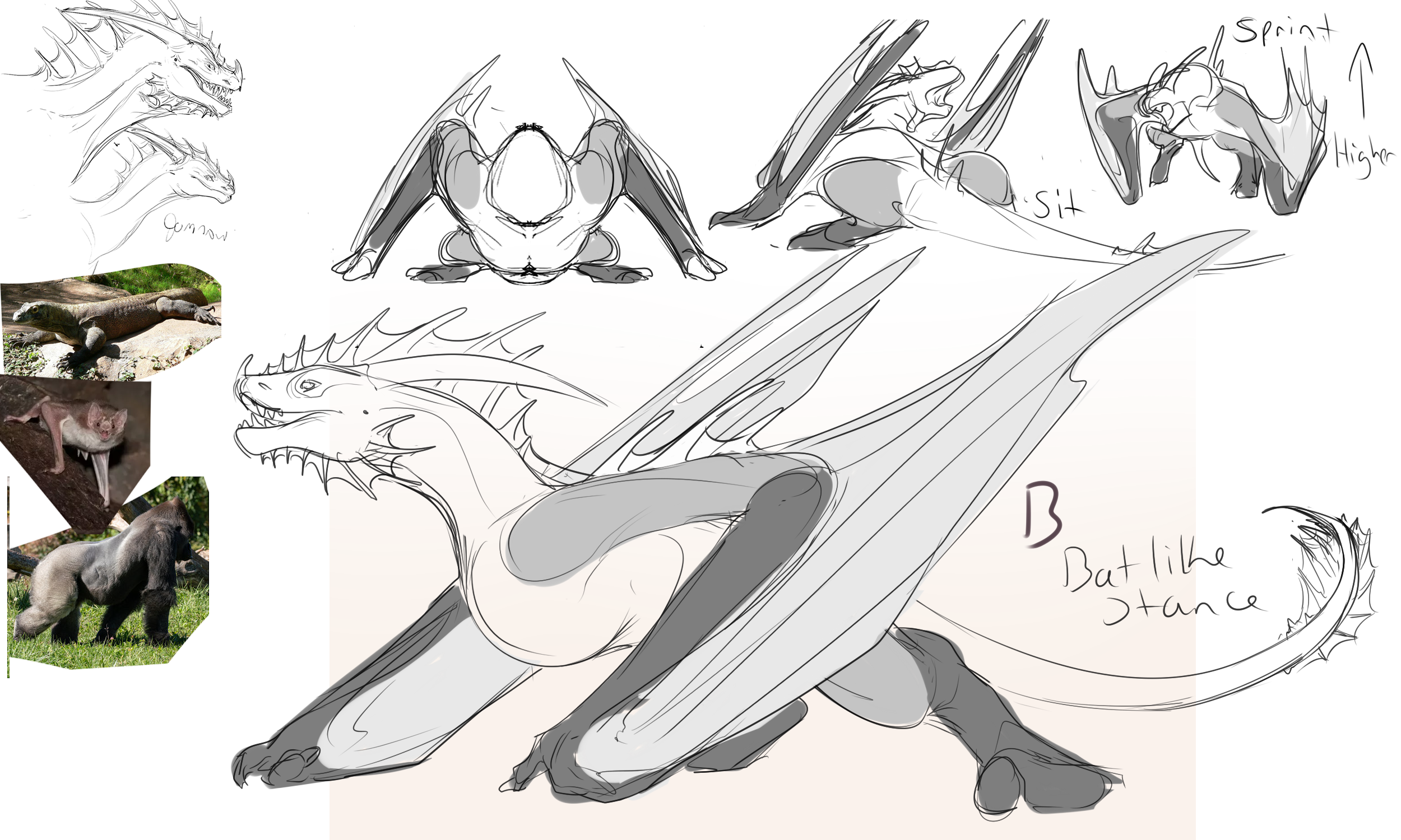 Greetings everyone. I hope you are all doing well this summer. Before I talk about UE5, let me address the elephant in the room... oh wait, that is not an elephant, it is an Inferno Ravager. Many fans have asked, "When is it coming out?" The answer to that question is Update 1.0. Obviously, the follow up question is, Why? Why was it pushed back? Well, when we finished it's animation set, much was broken. The adult back legs were too short for walking/running, the baby arms were too short as well, many of the animations were unusable. It simply did not meet my quality standards so we had to go back and fix a lot of things on the Ravager. Understand that this is our first Wyvern. The body is much different than a dragon since its wings are also its front legs/arms. With a dragon, we had the ground stuff figured out from the Acid Spitter Drake, just add wings. But with a Wyvern, it is our first Wyvern and to quote a friend, "Mistakes were made" but were fixing those mistakes and plan to release the Ravager with update 1.0. One of the things we had to do with it is go back to the drawing board and decide how it would stand on all 4's, how it would walk, etc. This is one of the reasons we hired Xilev, our 2D Sketch Artist who helped us conceptualize those things in these awesome sketches seen below.