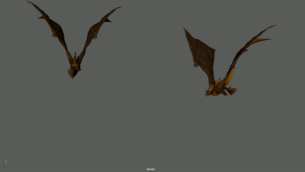 While animating the Inferno Ravager, we discovered an issue with the wing membranes clipping as it moved its arms. After some work, we were able to come up with a solution! Much like how a bat's membrane works, the Inferno's wing membrane will shrink and stretch as needed. This way we can keep the natural looking membrane size without having the issues that come with it. With the membrane issue fixed, we have been working on redoing the animations.