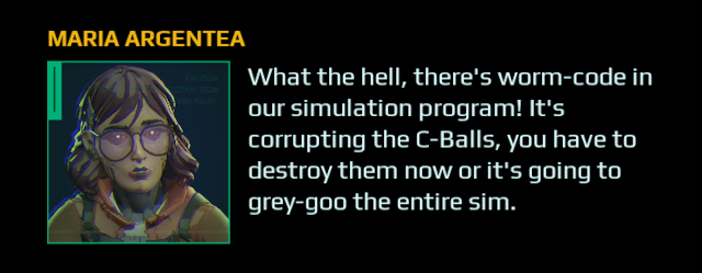 Remolded, Femto was soon on every billboard, every office, every TV, and of course, in your home, spying on you with their [b]ubiquitous C-Balls[/b], stealing your data down to your molecular structure. Some say that tech they eavesdropped is the root of their [b]newest product[/b], the one only seen by stock-holders. Some say this new product is her.