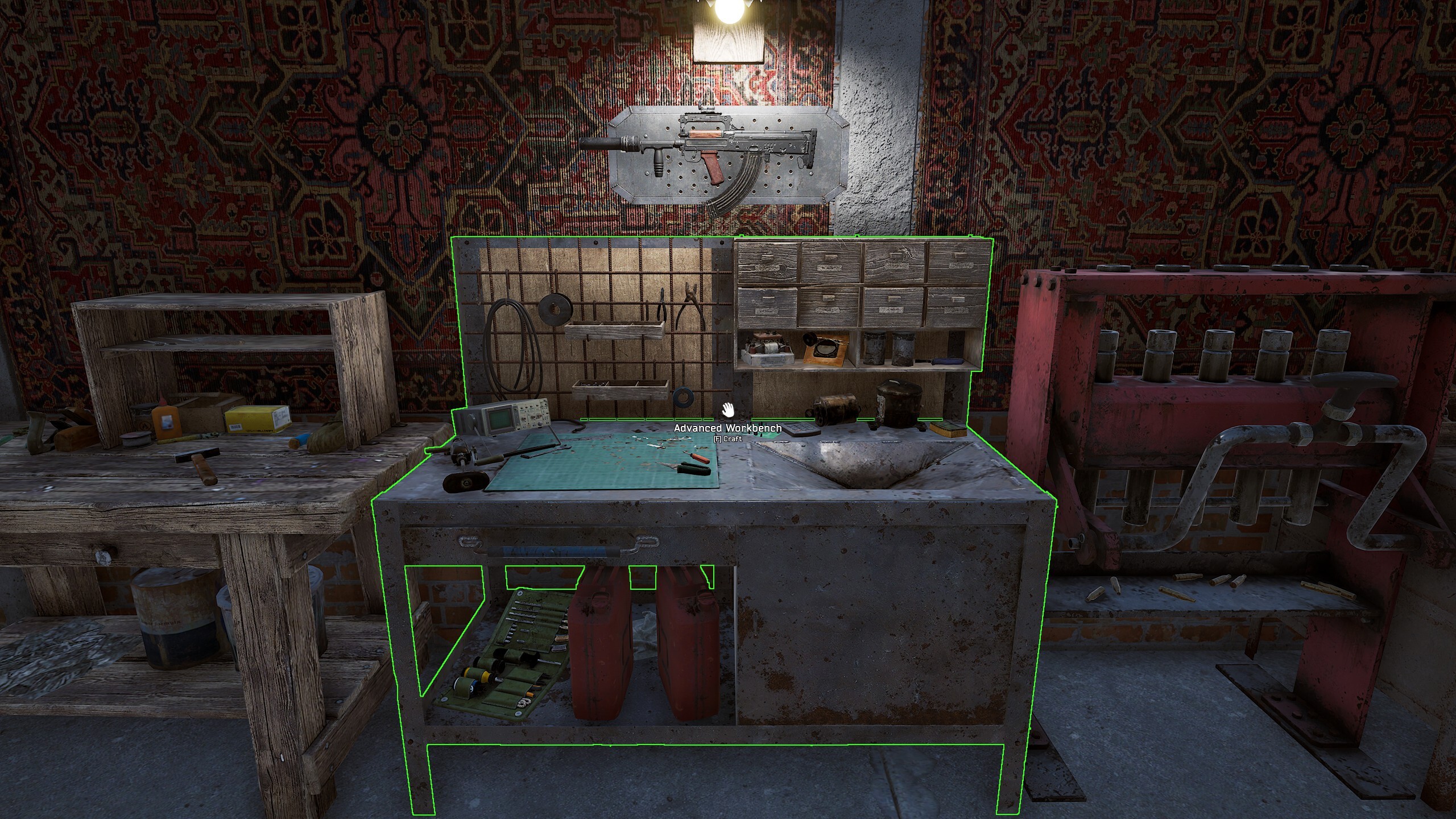 Along with an overhaul to weapons, we have also changed up the crafting and workbench system. Lots of crafting will now be done at your base at a workbench, with more complex recipes requiring the more expensive advanced workbench. Weapon repair has changed a bit as well, now done at the new repair and dismantling workbench. Each weapon now has its own individual part, ensuring that rare weapons require rare parts for maintenance.