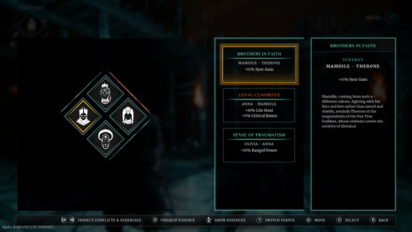 But that’s not all. As we mentioned earlier, each of the Fallen Warriors has its own personality, motivations, and beliefs. This creates conflicts and synergies between the warriors, which affect gameplay and your party's dynamics. Synergies result in smaller buffs (e.g. + 10% Ranged Power) that increase the stats of each warrior in the party. Conflicts, on the other hand, cause debuffs that affect your team (e.g. – 15% Critical Bonus) but also grant a significant buff to your stats (e.g. + 10% Life Steel). Therefore, when choosing warriors, you need to make decisions wisely and adapt them to your playstyle.