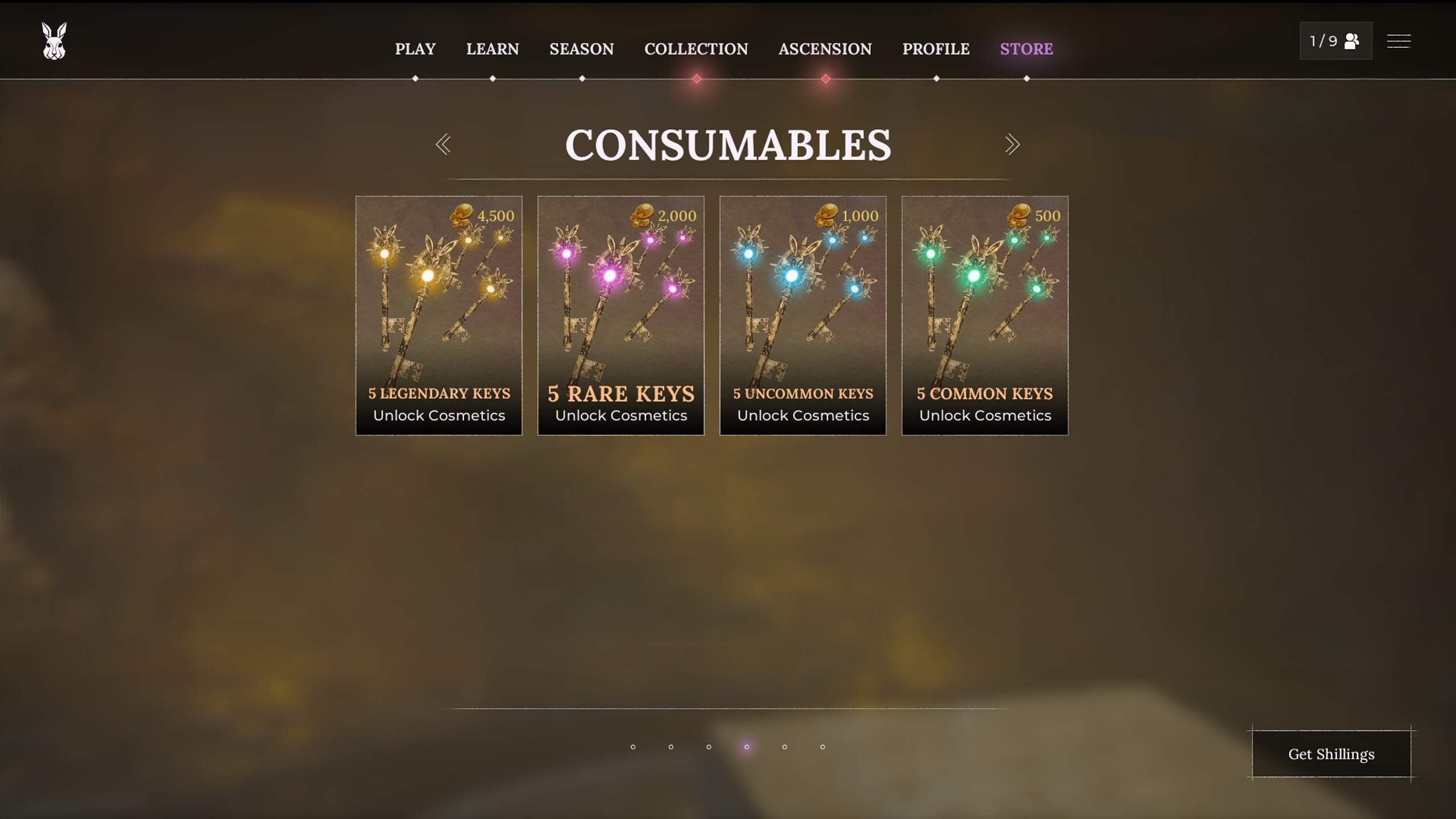 New Key Bundles have been added to the consumables section of the store for those seeking treasures from past cycles. Each bundle contains five keys, unlocking three cosmetics per key: