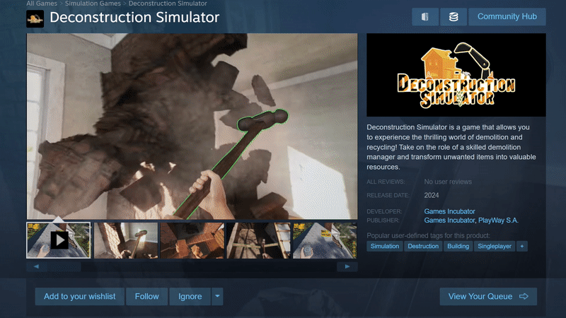 If you want to stay up to date with all the information about the game's development and support us, right now you can [b]add Deconstruction Simulator to your Steam Wishlist ✅[/b] thanks to which you will not miss any updates! ???? ????