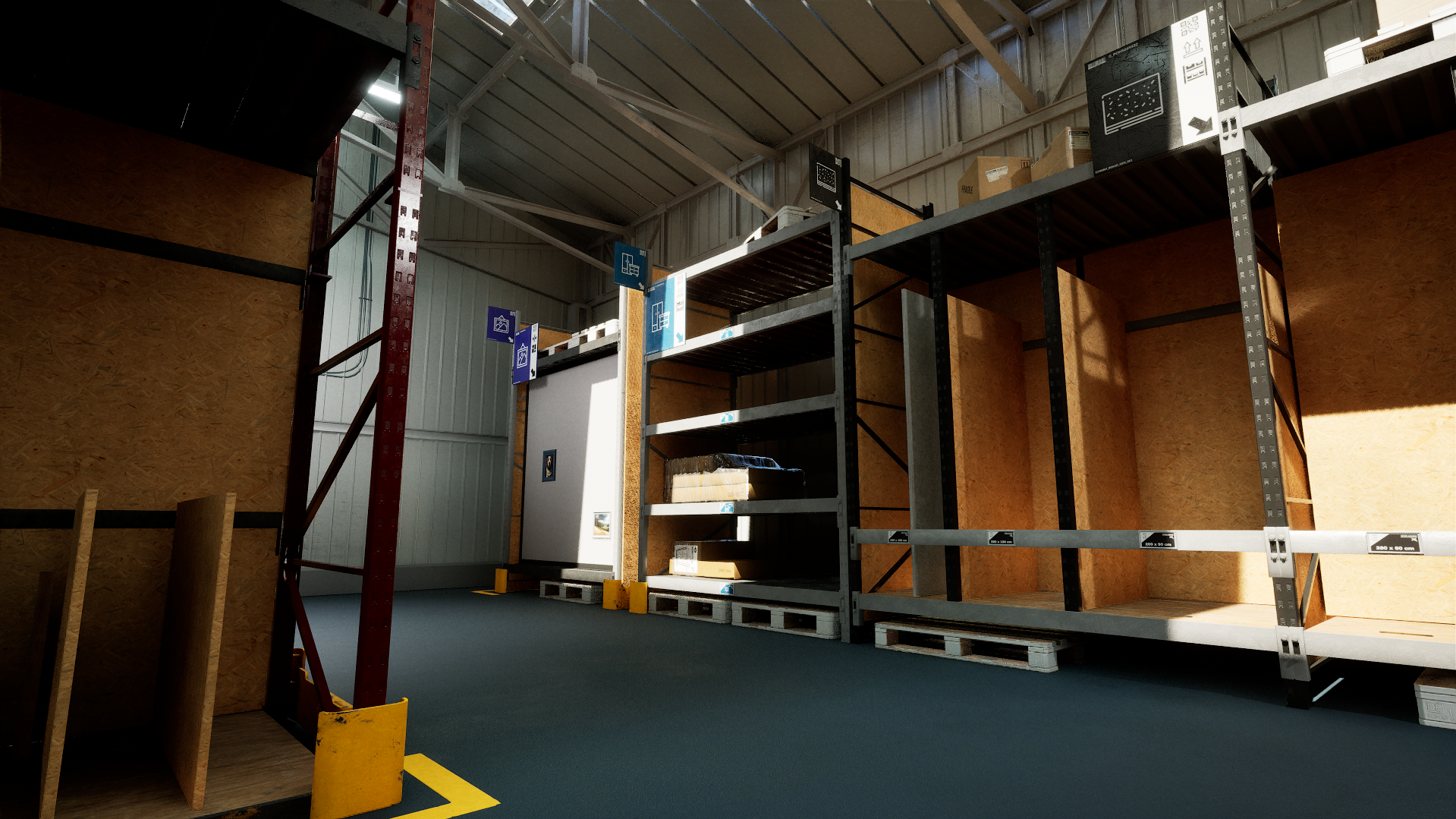 Once your truck arrives at the warehouse, all the goods and materials you’ve collected have to be unloaded manually. ✋ This means that you’ll have to sort them and find them a suitable place on the shelves. To help you maintain the order inside your warehouse there are indicators showing what’s stored on each particular storage shelf. ???? It’s a division based on different categories, some of which are: