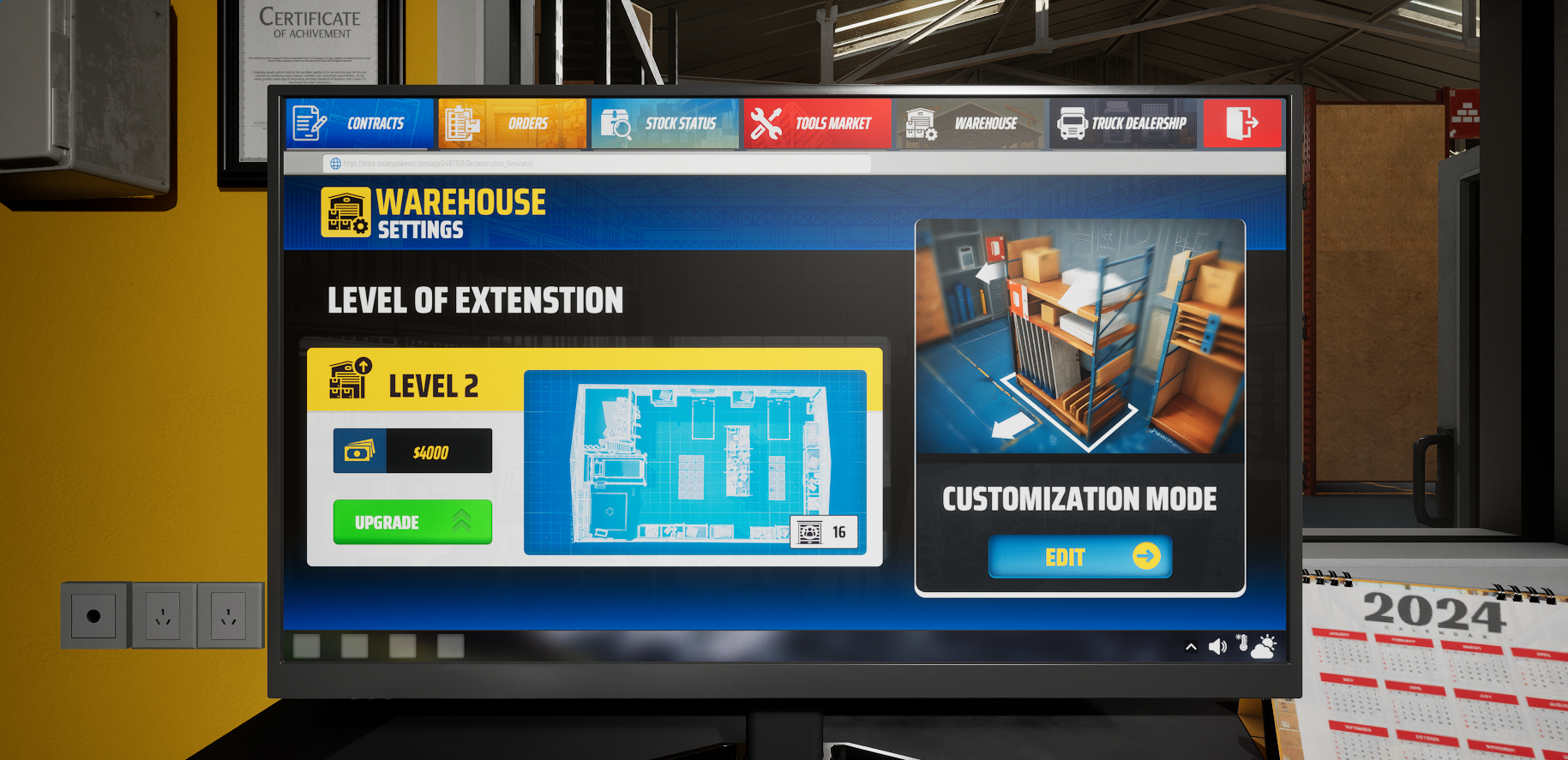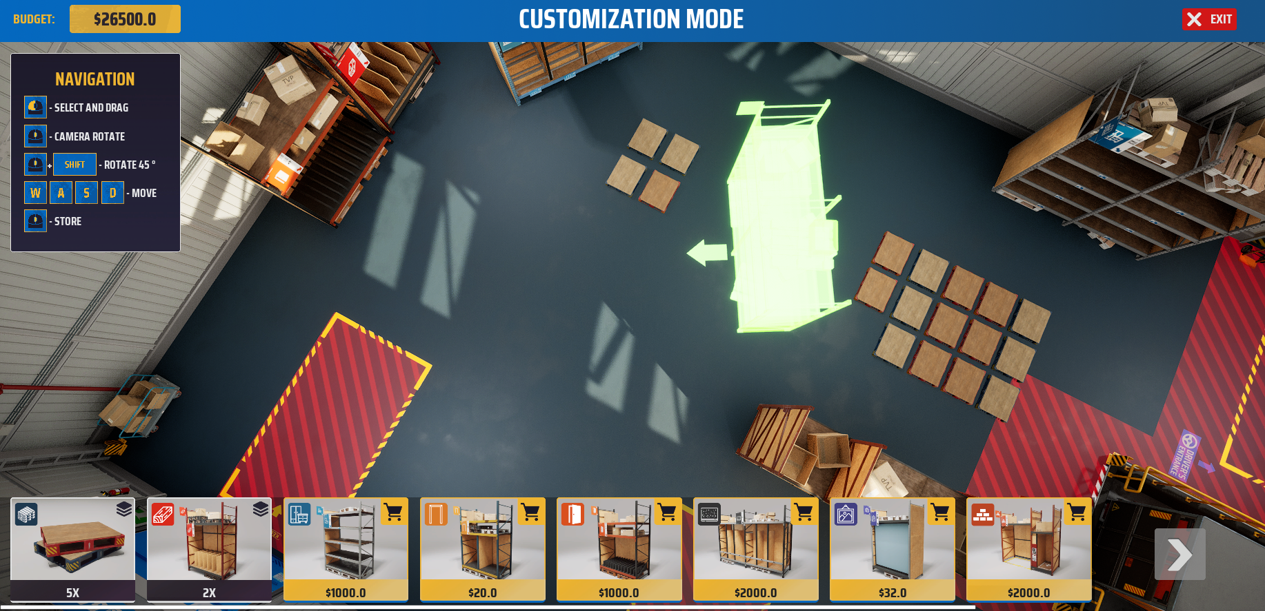Upgrades will allow you to increase the size of your warehouse while customization will hopefully make your business feel more personal. Moving and reordering all the warehouse furniture, shelves, pallets. More space but not enough furniture? No problem. Buy everything you want in the shop and arrange your warehouse however you’d like.
