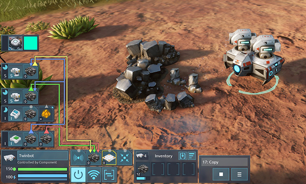 P1 - the type of ore you want to mine Select a storage place at the default "store" field Connect only the second parameter to the "visual" field Works best if you have a LOT of them ;) Please note: you can set your Robotics Factory to mass-produce the bots if you save them with this script running as a blueprint - they will wait until you assign a dropoff point, and they'll even tell you what they're doing^^