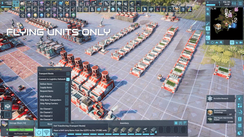 - Add "Flying Unit Only" setting to logistics network options. If both "Flying Unit Only" and "Item Transporter Only" are checked, either flying or transporters can do an order.