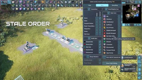 - Added "Overlay Settings" menu, accessable from button underneath minimap with detailed customizations for what unit connections, state icons or health bars are shown