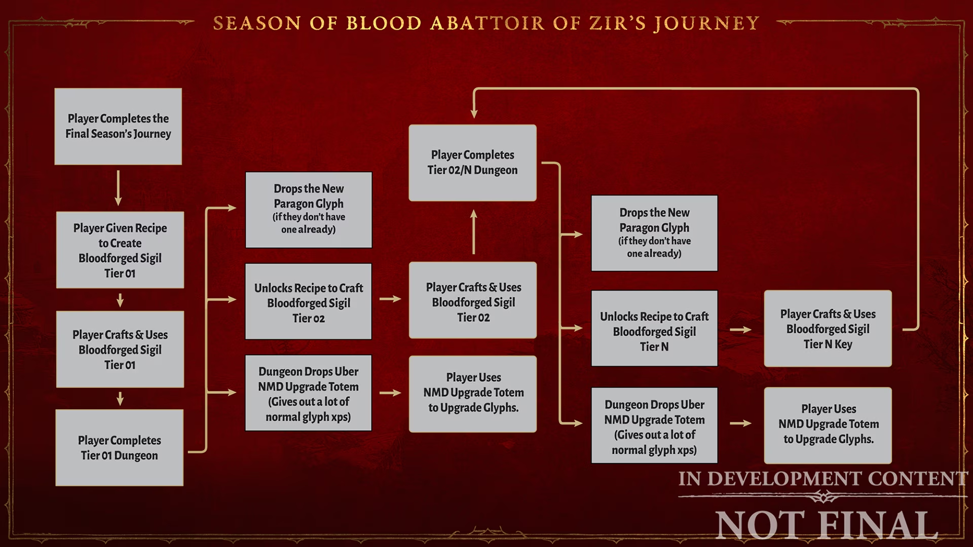 Courageous wanderers in the Seasonal Realm can put themselves through a grueling test in the Abattoir of Zir. From December 5–January 23, after completing the final tier of the Season Journey, enter the Visceral Channel to push your Vampiric Powers to the ultimate limit with this Seasonal Event. The Abattoir of Zir is an ultimate challenge, it’s recommended to only use your best builds and Characters that are at the pinnacle of their power at Level 100. Note that all rewards earned in the Abattoir of Zir last until the end of Season of Blood.