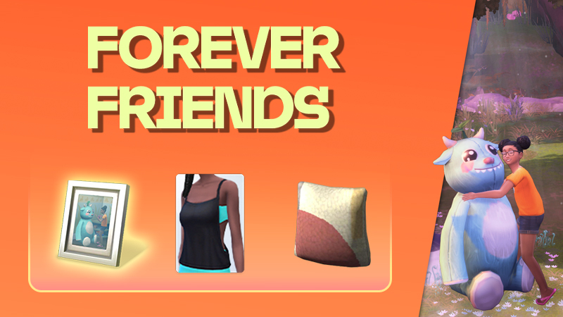 Play week 2 of Forever Friends in The Sims™ 4. Go on a photographic adventure with your plushie pal to earn these rewards: the Modern Photo Frame, Flex & Form Top, Super Chill Pillow, and San Myshuno Magnet.