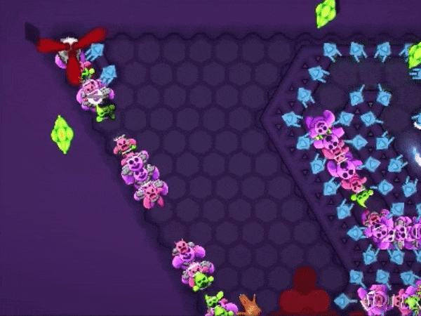 A restless hand roams around the map doing things on whim. One of them is trolling the towers. It takes fancy to a certain tower. It will approach it. Ponder for a few moments making up its mind. If it doesn't like the look of the tower, it will turn into a fist and crush the tower in an instant. This may destroy the carefully crafted maze of yours, thus leaking a flow of enemy to your precious cores at the most inopportune moment. But the hand may as likely loose all the interest in the tower and spare you the agony. Who knows!