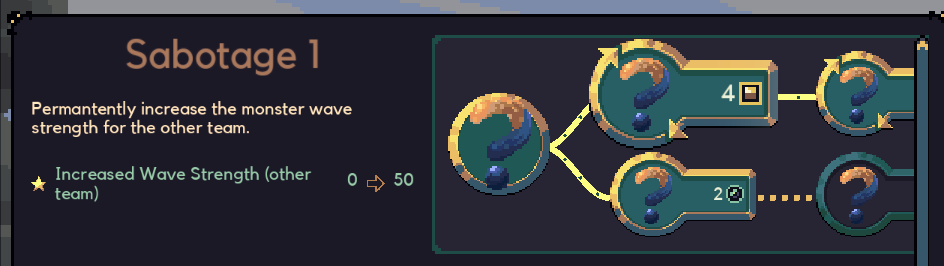 There are two ways to sabotage. The first is to buy upgrades that directly and permanently increase the strength of the wave the other team will face.