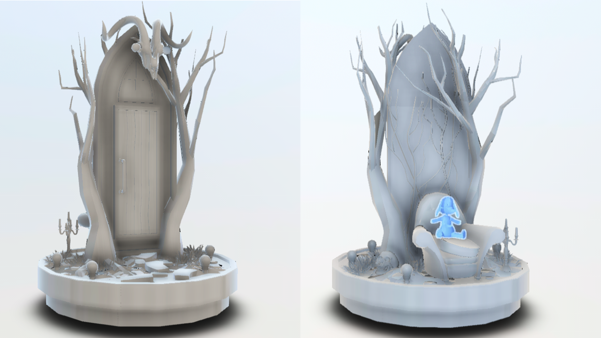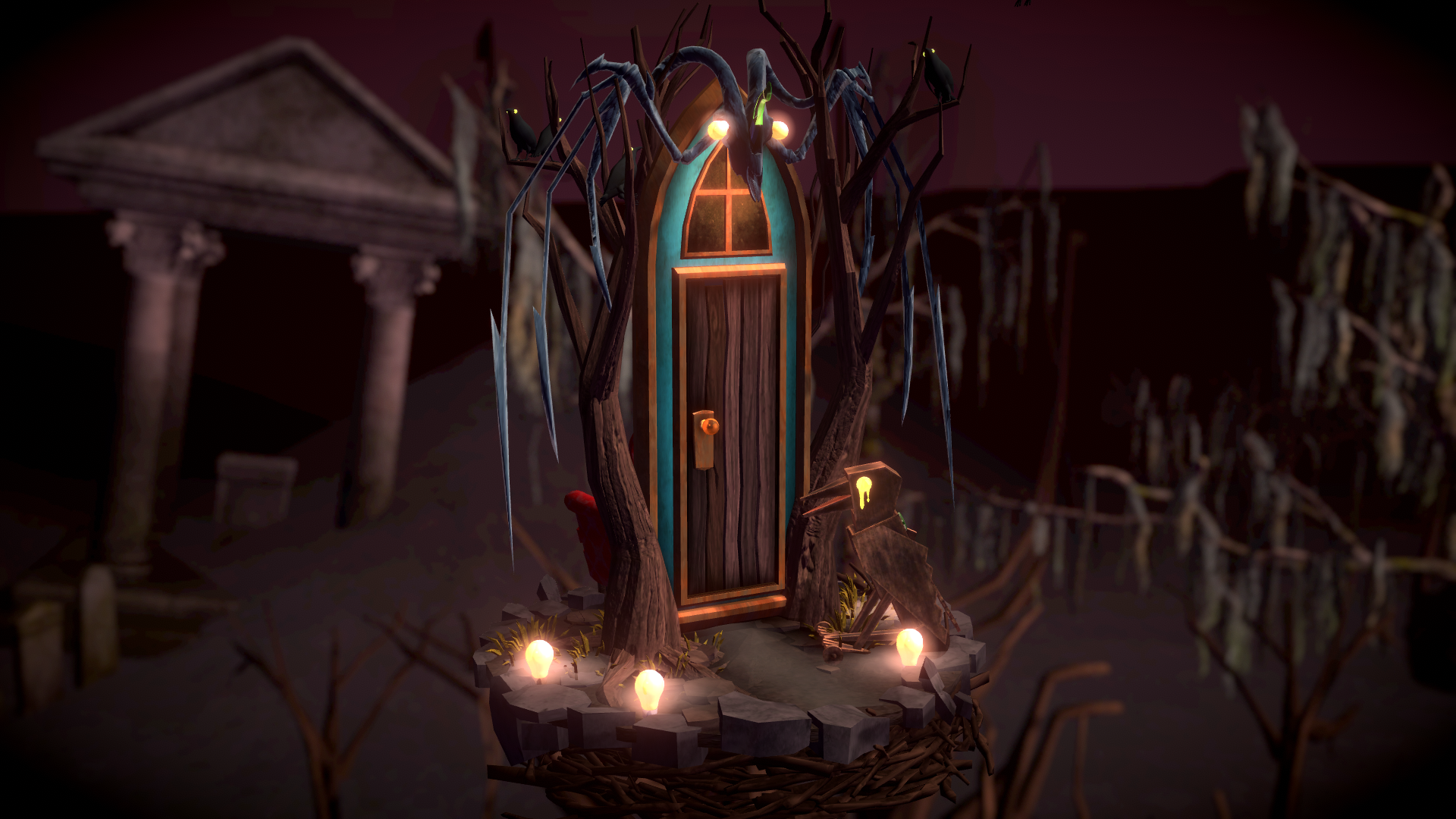 Now that we take a closer look at the second prototype - you might get the idea that we literally combined the pair. The weird ram head is there, the teddy bear plushie and the door frame also got influenced from this version. Interestingly, it wasn't one prototype which got developed over time, but two separate which were worked on independently as different levels.