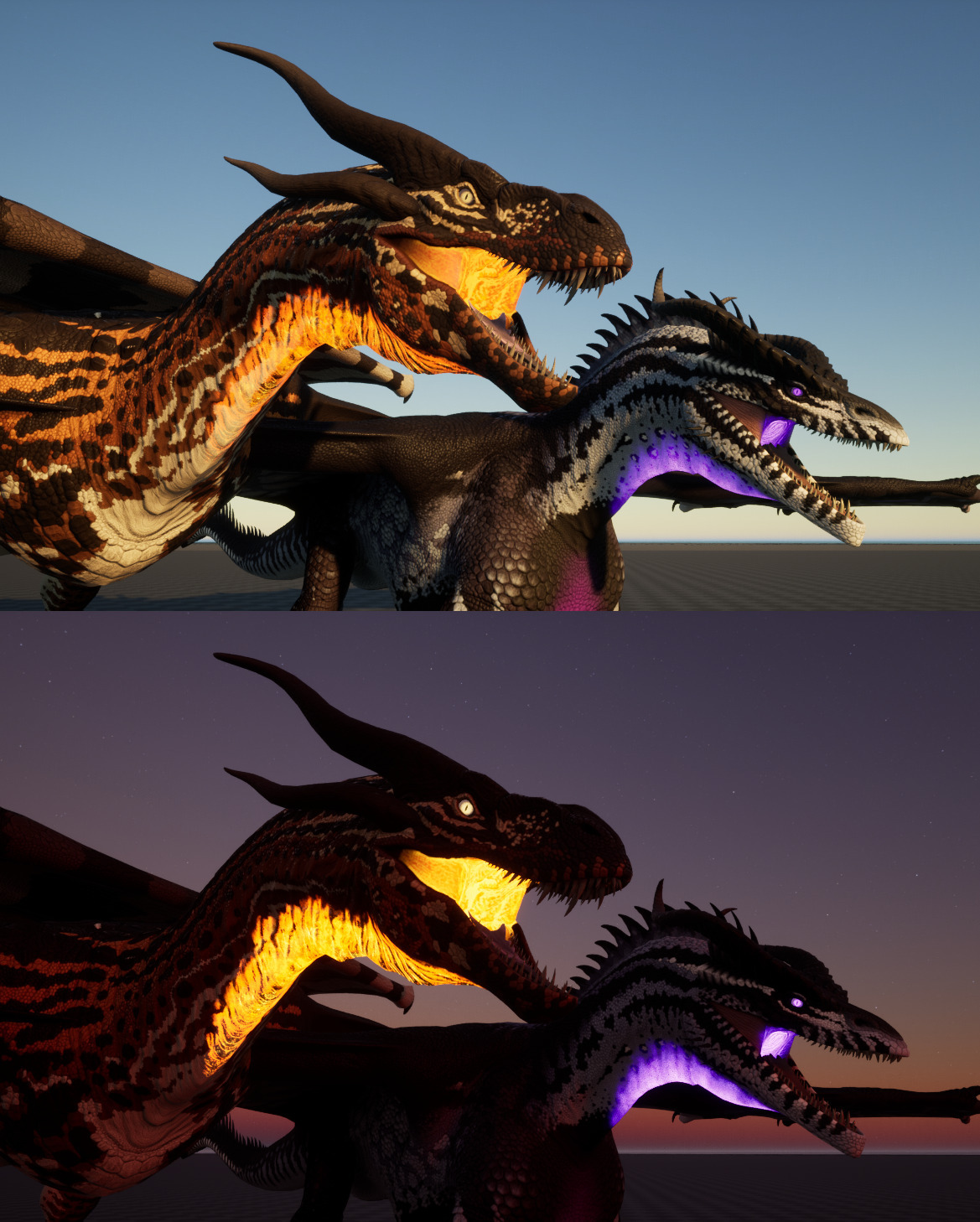 As a result we created some effects for our characters that will only appear when they use specific abilities, e.g. a throat glow when they use a fire or shadow breath